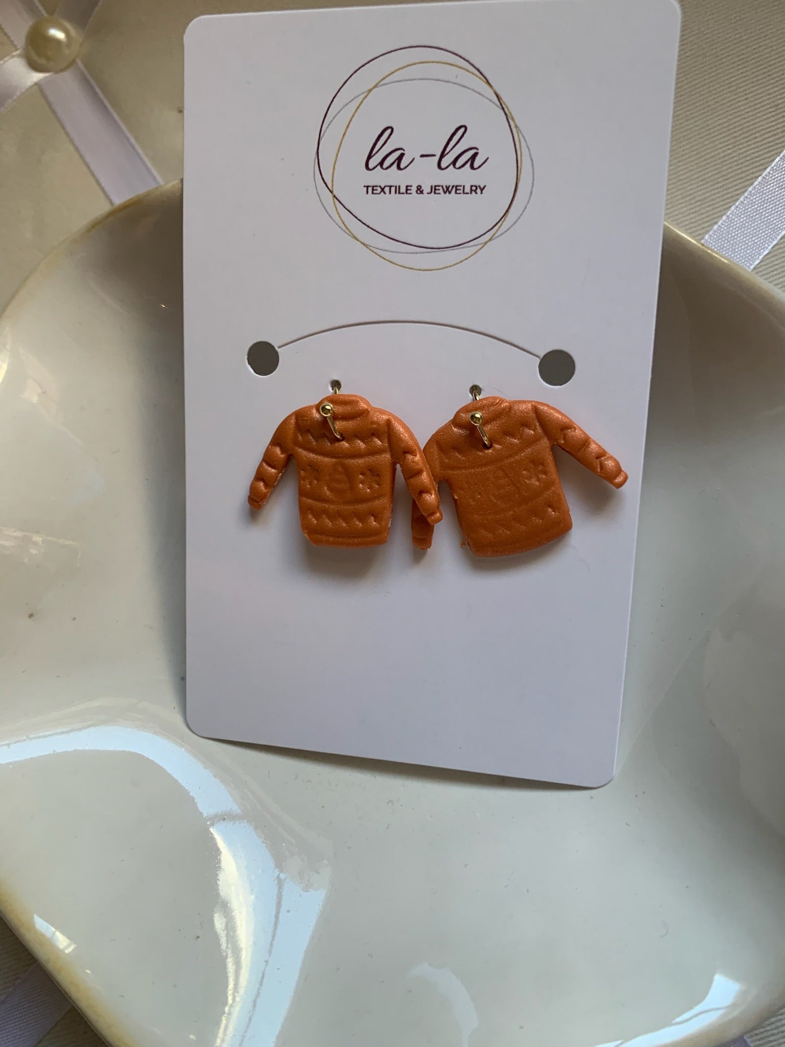 Get into the holiday spirit with these fun handmade Christmas sweater resin earrings that celebrate the cozy charm of the season! Each sweater earring features detailed knit patterns and designs that capture the warmth and tradition of classic Christmas sweaters. Available in warm orange or elegant cream, these playful lightweight holiday earrings are perfect for holiday parties, office celebrations, and anyone who loves to add a touch of whimsy to their seasonal style. The gold-tone hooks create a cheerful look that complements any holiday outfit and is sure to spark conversations.